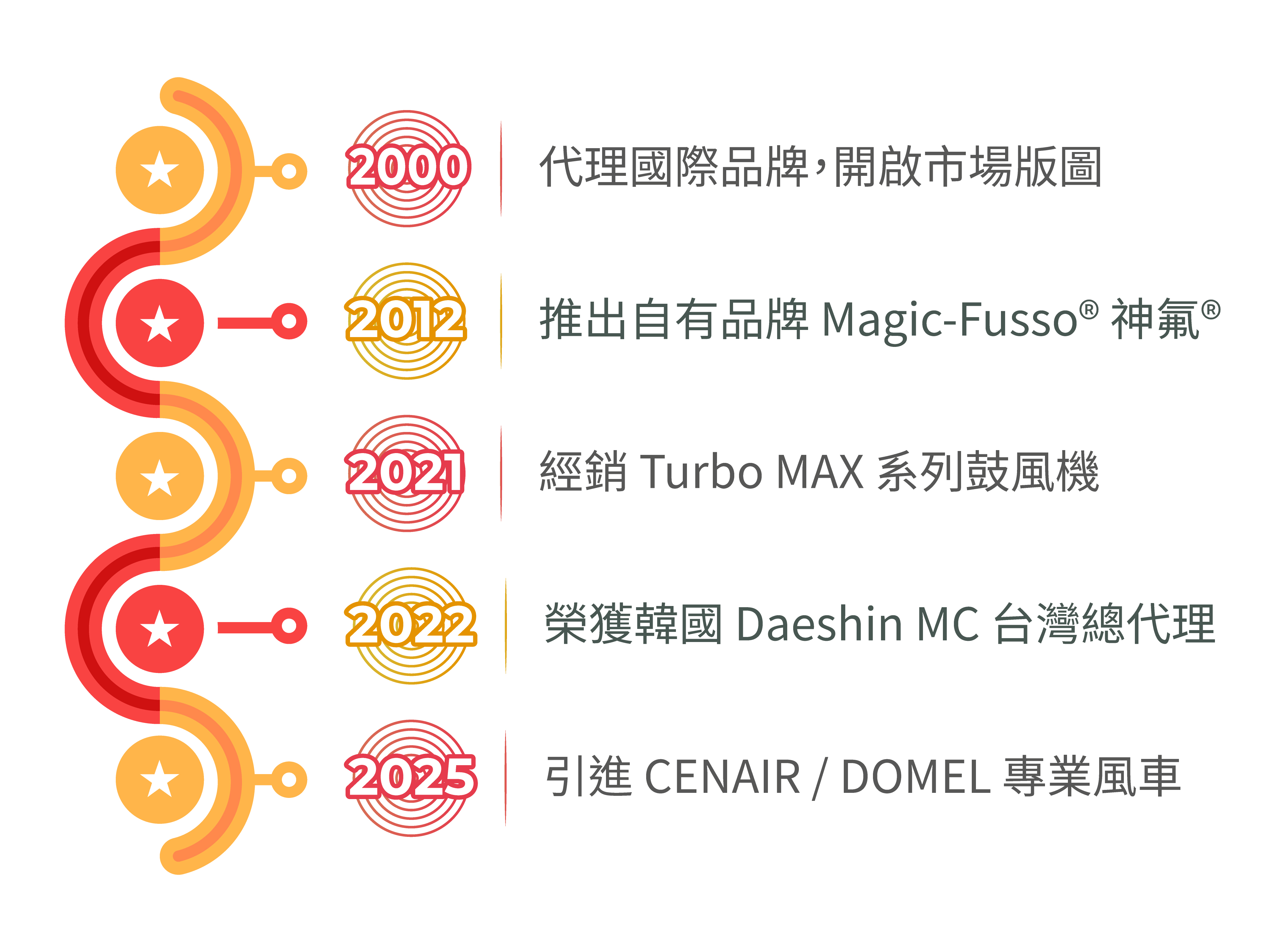 同時,自有品牌 Magic-Fusso 神氟  創新潤滑解決方案,已協助石化、發電與電子級無塵室客戶大幅降低污染與能耗,持續在節能與環保領域創造效益。